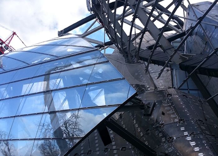 Completely bespoke glazing design comprising glass curved in 2 planes, no two units were alike – even the vacuum lifter was designed just for this project. The sub-structure for the glazing was created from curved CHS stainless steel sections, and the structurally glazed curved laminated glass attached via and ingenious mounting system allowing the glass to be set not only left and right, but also in pitch. This was vital to ensure a smooth curved finish was achieved.