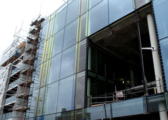 This 4 storey office building consist of structural glazing, unitised elements, mullions – transom facade, atrium facade, atrium roof and glass louvre windows. . The level of skilled labour on this project peaked at 20 operatives