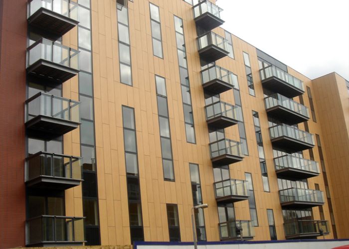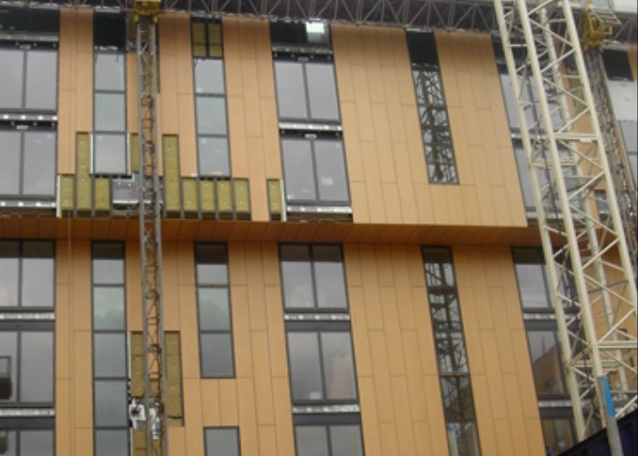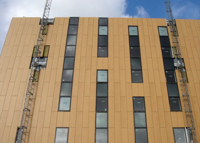 This new apartments building consists of 4600m2 of Trespa Cladding, 850m2 of Brick Slip Cladding, 6500m2 of Metsec and 2100 m2 of Velfac Window. The level of skilled labour on this project peaked at 25 operatives.