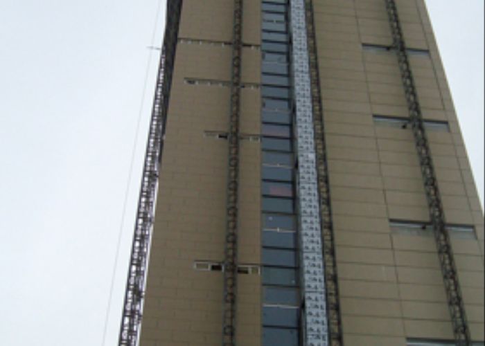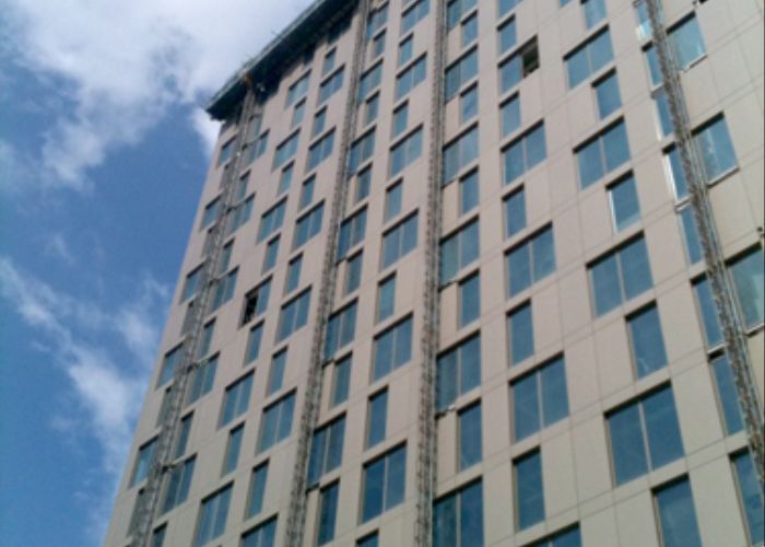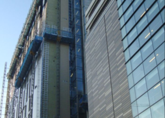 This project, consisting of 2 No. mixed use tower blocks, one of 15 storeys and one of 18 storeys, comprises 3,000m² curtain wall, 7,500m² rainscreen, 3,600m² windows and 2,800m² of louvre, euro panels and feature metal work.