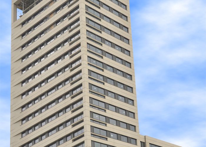 Accommodation block consisting of 13 story block adjoined with a 25 storey tower. Sometimes it is good to get back to basics, and this project provided the ideal opportunity comprising ribbon window glazing with feature cills, and capped curtain walling. Peak labour force on this project was 20 operatives.