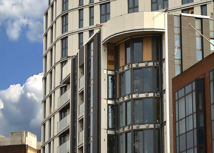 A residential tower glazed with a fully unitised system, D&A have been able once again been able to achieve an impressive output with the minimum number of operatives. Installation of the unitised system has in the main been carried out by mini-crane, operated and banked by D&A, which has allowed control of the speed of installation. Another boon to production on site was allowing D&A to control the challenging logistics involved on such a tight site, with D&A providing the logistics team including hoist drivers. Peak labour force on this project is 30 operatives.