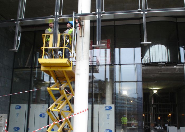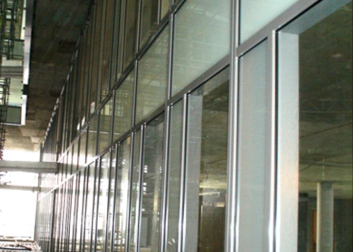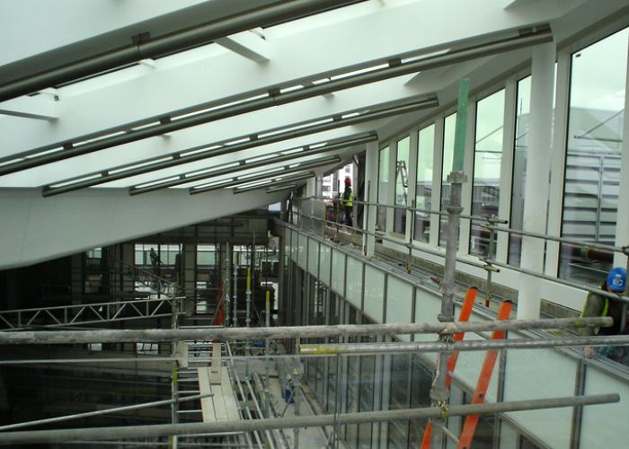 This 4 storey office building consist of structural glazing, unitised elements, mullions – transom facade, atrium facade, atrium roof and glass louvre windows. . The level of skilled labour on this project peaked at 20 operatives