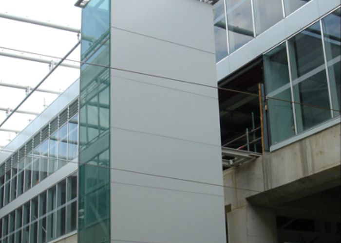 This project consist of curtain wall, windows, aluminium panels canopies, steel mesh panels and stainless steel balustrades. . The level of skilled labour on this project peaked at 40 operatives.